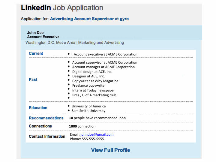 Because of the volume generated by Linkedin, hiring managers have the luxury of trying to find exactly what they are looking for without having to dig too hard to find it. We quickly scan the email summary and the attachments. As a result candidates need to: